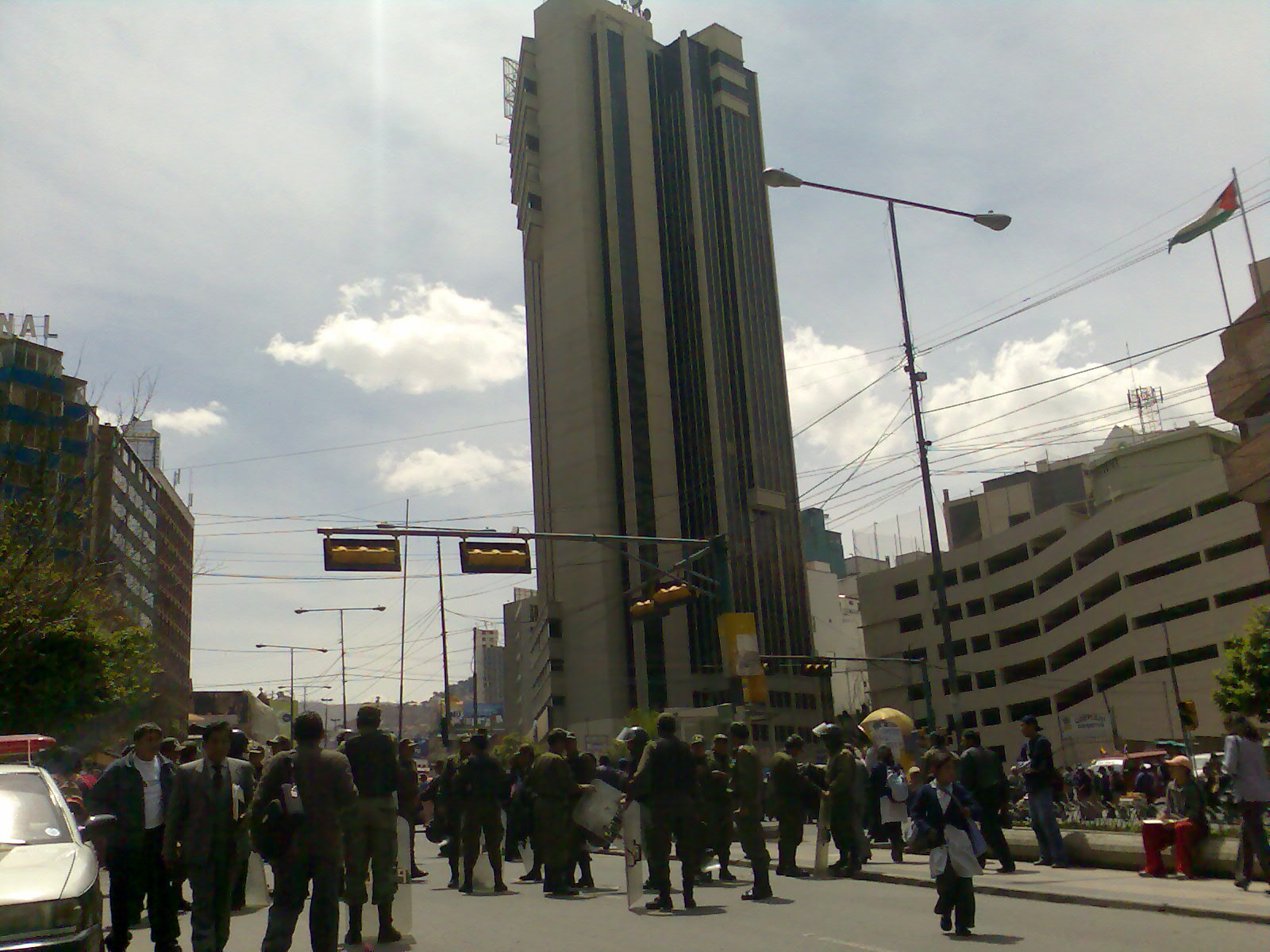 - Historia:En Bolivia existe una cultura del bloqueo impresionante, en la foto unos soldaditos (itos porque son jóvenes, de escasa formación y nada profesionales) están descansando delante de una manifestación (que ya ni recuerdo de qué era)